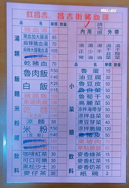 菜單|紅昌吉豬血湯