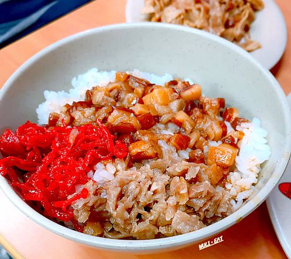 大碗的魯肉飯也蠻大一份的,魯肉是這種肥亮肥亮的,瘦肉不多,但吃起來不會有肥肉的噁心反胃感。