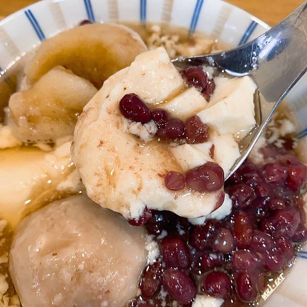 豆花可選兩種配料,我最常點的組合是紅豆+芋頭,超級絕配!