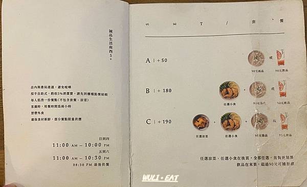 每人低消一份餐點,有別於其他店,這家竟然只酌收5%清潔費用,客滿時,用餐時間為兩小時。