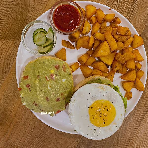 酪梨的部分就只有漢堡麵包上面一層有酪梨醬,本來以為漢堡裡面會有整塊的新鮮酪梨片,酪梨醬清爽好吃~