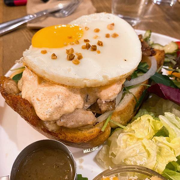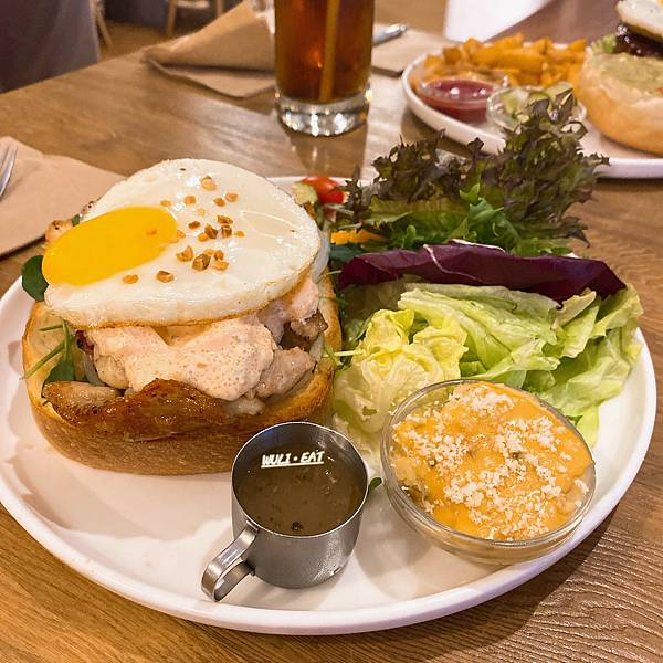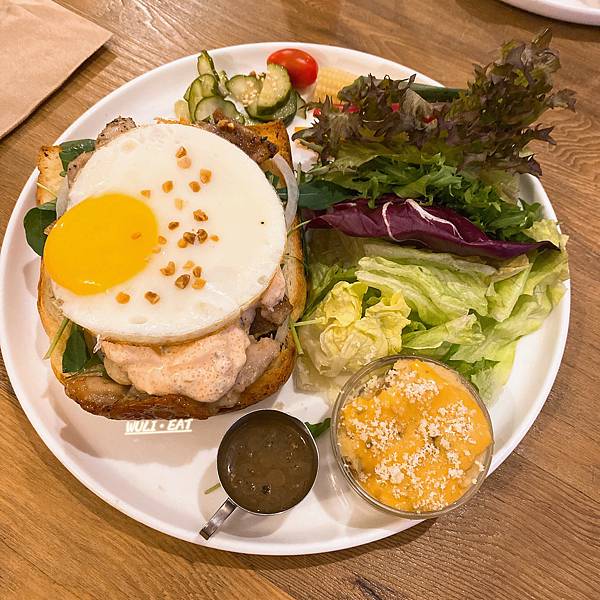 早午餐盤有附生菜沙拉、太陽蛋、起司薯泥,吐司烤的酥酥脆脆的相當好吃!
