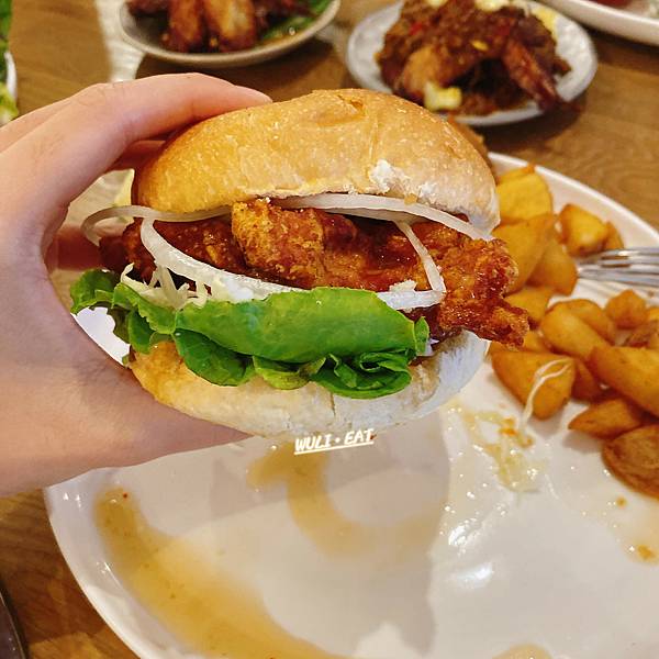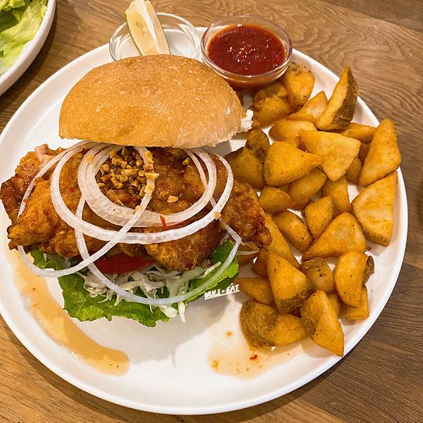 漢堡本身裡面就有加酸酸的那種泰式醬汁,單吃就蠻好吃的,但擠上旁邊附的檸檬後,風味更上一層樓,有泰式的酸辣感加上檸檬的清爽天然酸,很推薦喜歡吃酸的朋友喔~~