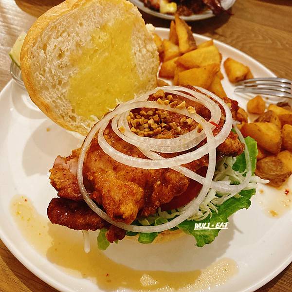 炸雞很大很厚的一塊,炸得非常酥脆! 上面有放少許的洋蔥圈,增加一些洋蔥的甜~