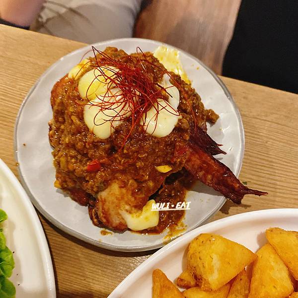 這個雞翅好吃但超級辣!! 真的是「激辛!」上面會撒一些番紅花做裝飾,起司可以中和辣醬,但還是很辣~