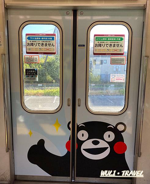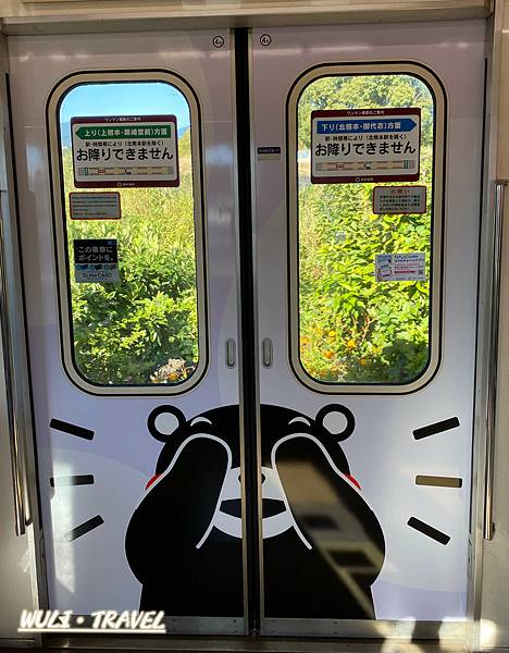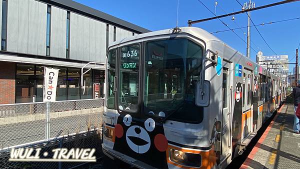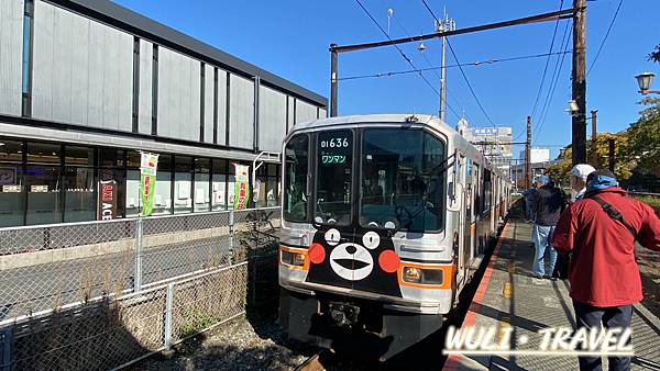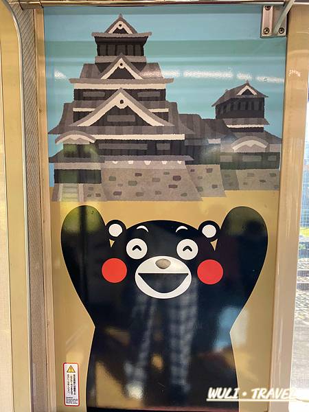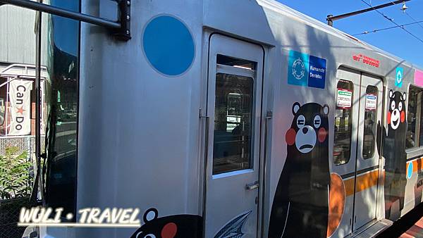 以熊本縣最有人氣的吉祥物-熊本熊為主題的彩繪電車,熊本熊可說是瘋迷全日本的超萌吉祥物,聽說日本的吉祥物票選比賽已經禁止熊本熊出賽了,因為只要熊本熊一出場,絕對斷層第一啦!! 這次就來搭乘超萌Q的熊本熊彩繪電車啦!!