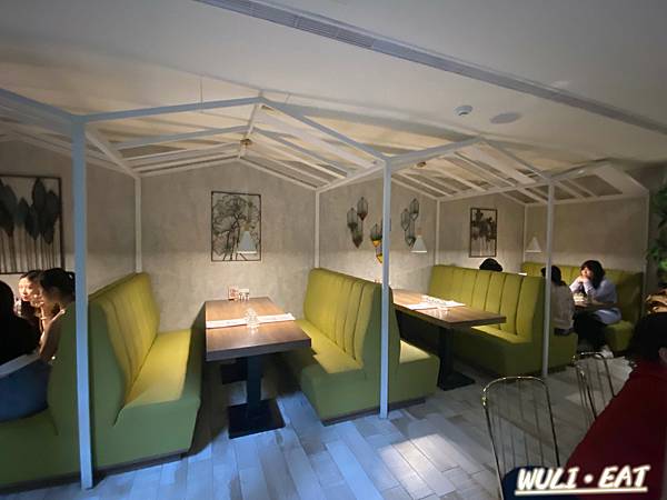 整體的光線不是整間店通體明亮的,只在每桌的上方有燈光,一個打光的效果,更有氛圍感喔~