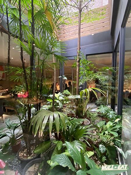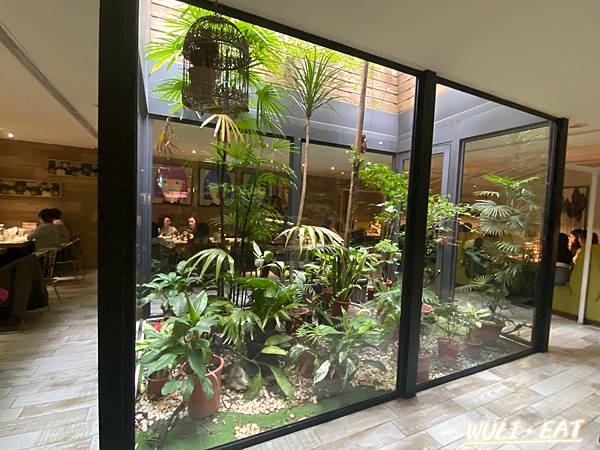 最特別的是店內中間有一個用玻璃窗圍起來植栽區,上面是有讓太陽光可以照下來的,植物照顧得很好呢~~好漂亮~