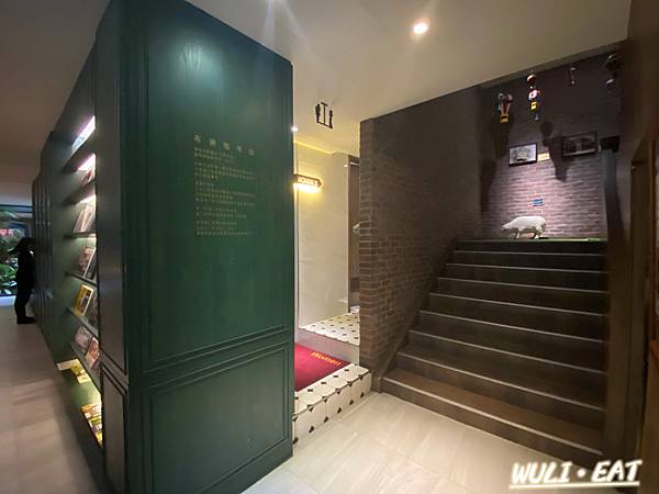 走進去有往二樓的樓梯,紅磚配上綠色的櫃體,真的很高級復古感!!