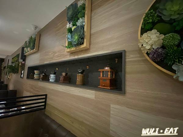 牆上的裝飾也可愛可愛的,像這邊有磨咖啡豆的,另一邊有女孩相框,或是地圖、鳥籠~蠻喜歡這種布置的。