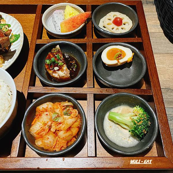 超澎湃的餐盤,好精緻!! 一個主菜搭配6小碟小菜,還有附一碗白飯、紅茶、甜湯。