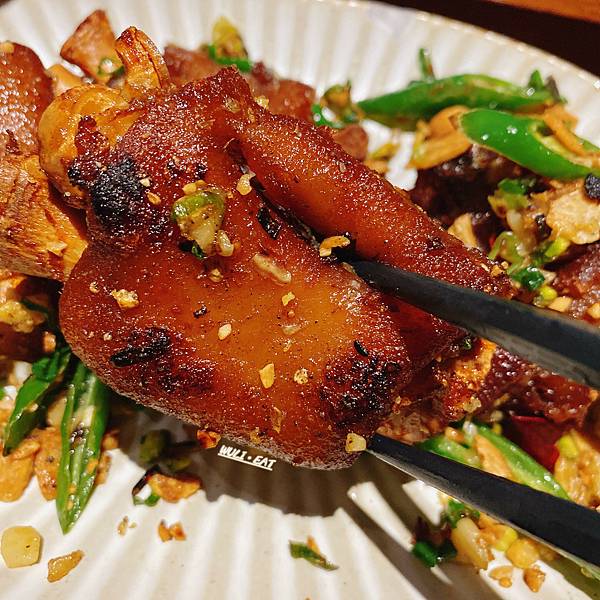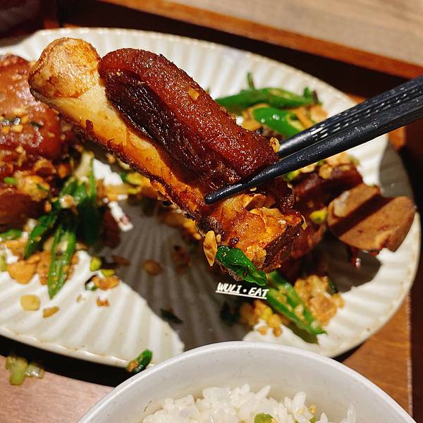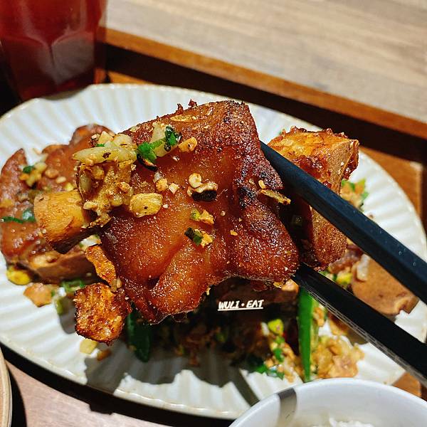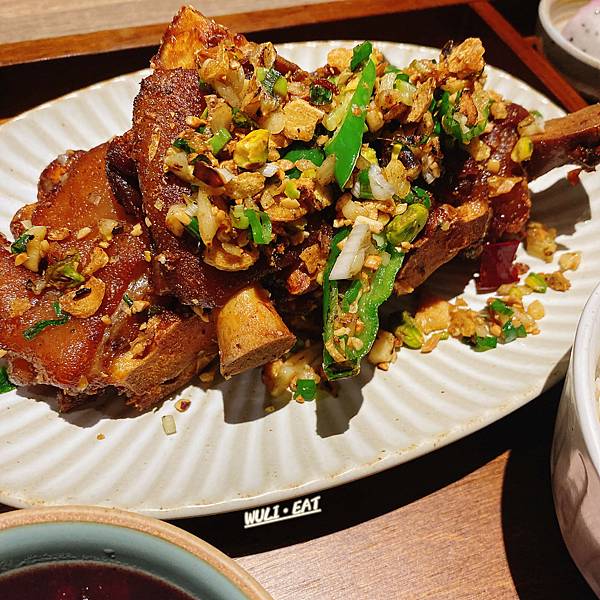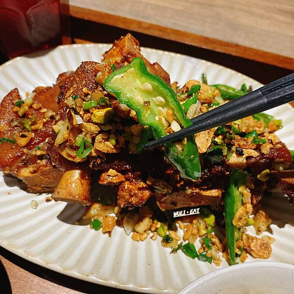 一上桌,椒鹽的香氣撲鼻而來~~豬腳上有撒一些蒜酥、蠶豆、乾辣椒,更增添了口感,糯米椒也搭配得好好~超好吃!