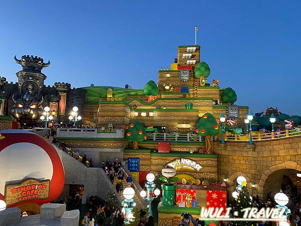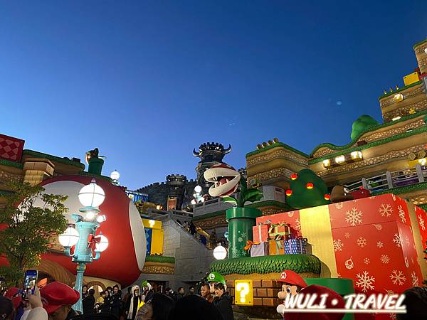 來之前都有在網路上看過照片了,但當我走進水管進來任天堂世界後,還是發出讚嘆! 真的好有童話感的世界,而且跟在照片上看到的感覺很不同,建築很大,真的有種在遊戲世界的氛圍,難怪這園區這麼夯~裡面有很多小小的互動遊戲,大家都忙著用能量手環蒐集硬幣,但手環太貴了,我就沒買了~