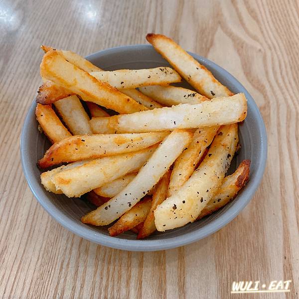 松露薯條是撒松露粉在上面的,不是松露醬,不過松露味道還是很濃郁喔! 他們家的薯條炸的剛剛好,而且外層炸的那層薄薄脆脆,好吃!